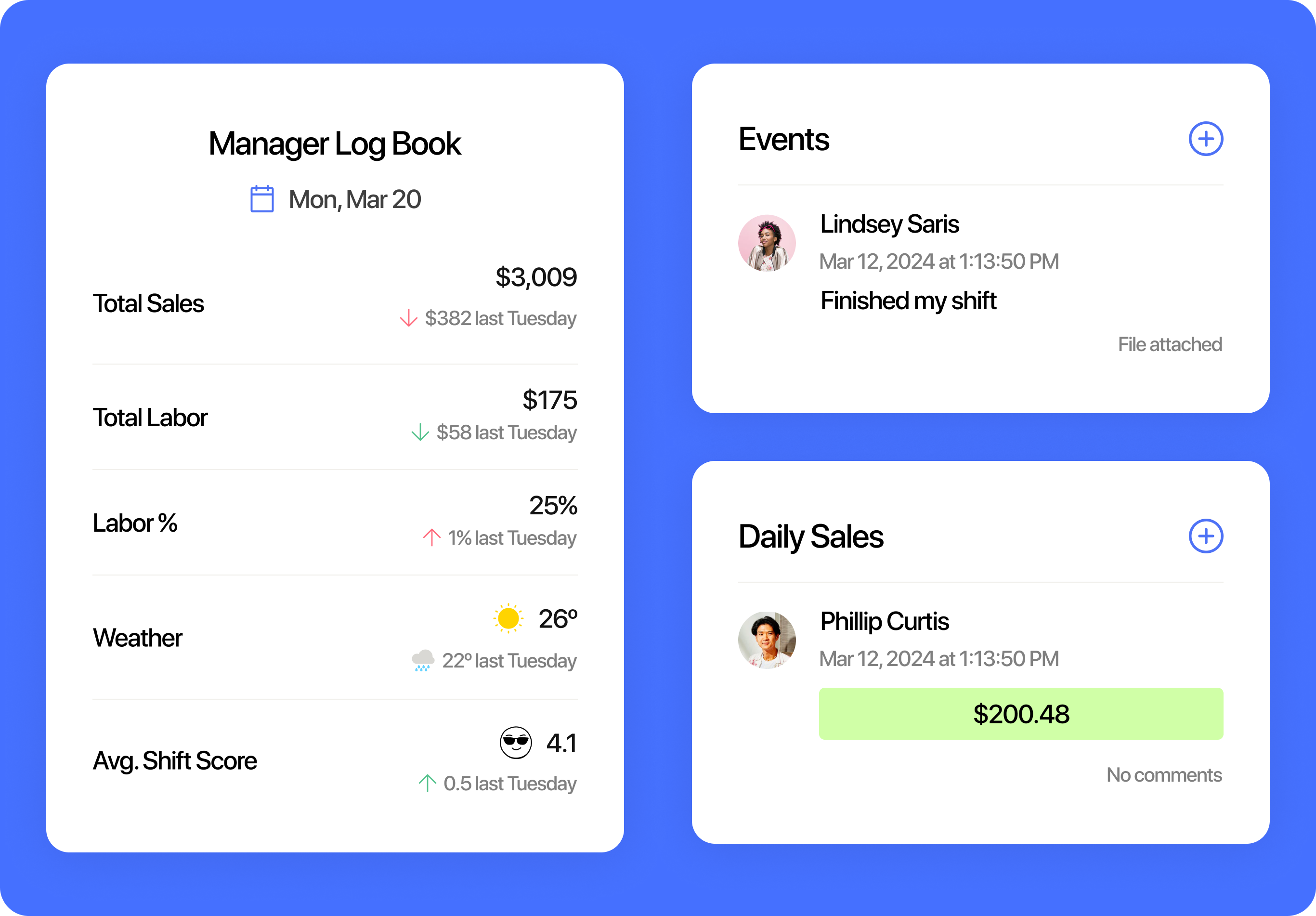 With Manager Log Book you can add notes, assign tasks to other managers, and monitor your sales and labor data.