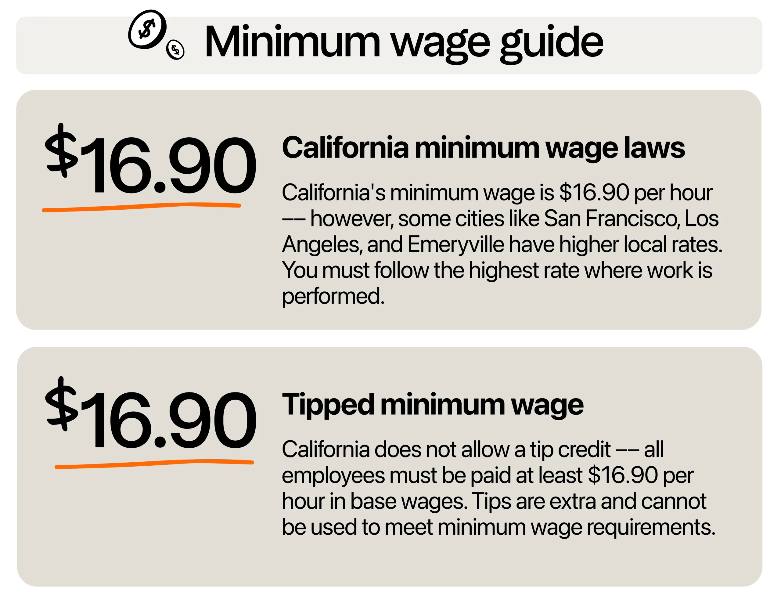 California’s state minimum wage is only a starting point. Many cities and counties across the state set their own minimum wage rates, and these are often higher than the statewide requirement. Local minimums can change at different times throughout the year, so it’s easy to fall behind if you’re not paying close attention. You can’t assume one pay rate will work for every business location.