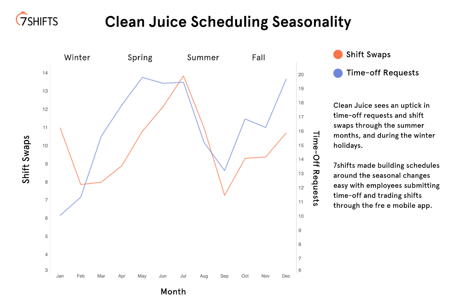 The restaurant industry deals with a lot of seasonal change over the year—not only in sales but also with employee availability. As 64% of restaurant staff are 16-25 years old, with many of them in school, their availability and scheduling needs can vary a great deal over a calendar year.