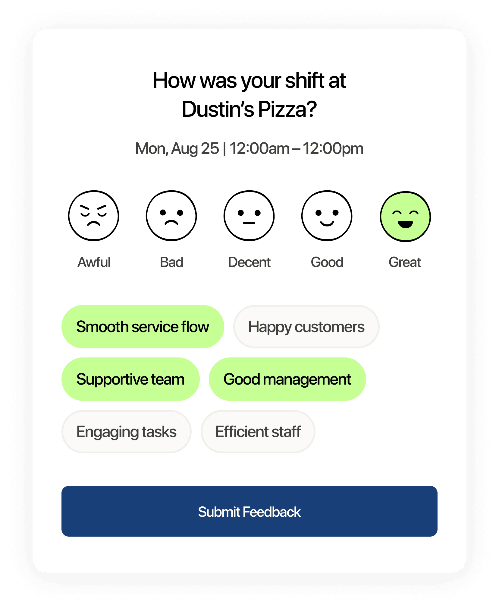 – Send shift surveys and gather feedback on areas for improvement