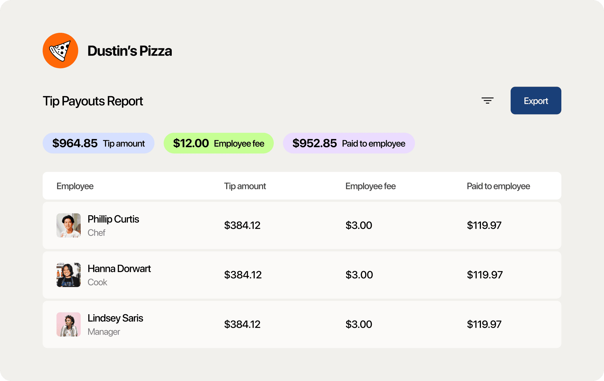 Payments sent through Tip Payouts arrive in employees’ accounts instantly and automatically.